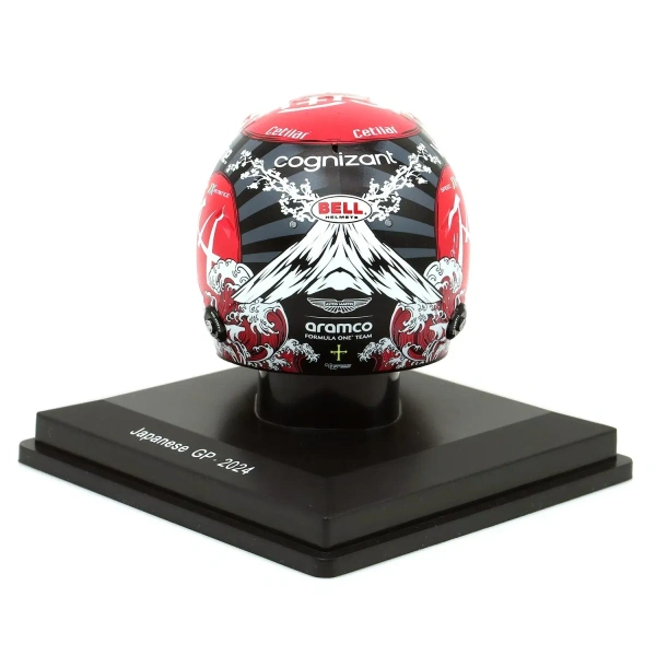 This, one of a kind 1:5 scale model is an artful representation of the fantastic lid donned by Alonso at the 2024 Japanese Grand Prix, where he finished in fifth position, his best finish of the whole season.